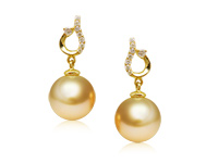 | 18K黄镶钻海水养殖珍珠耳环 |